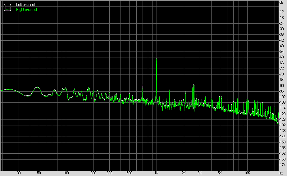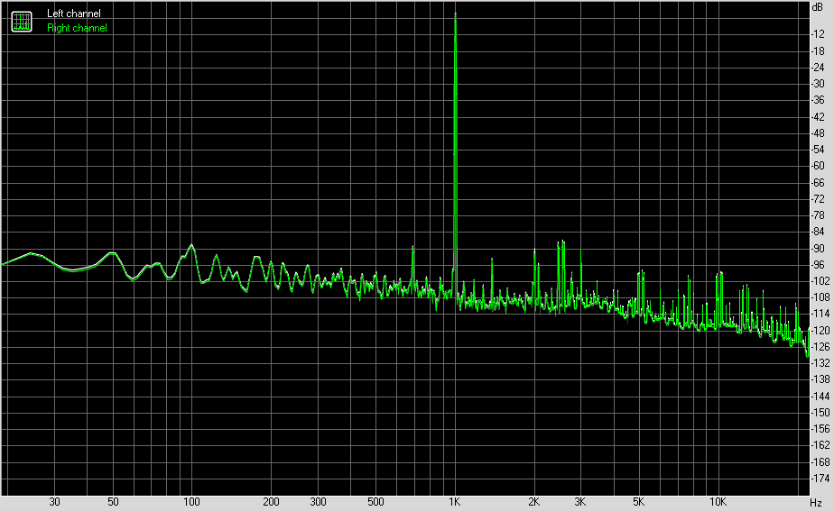 Для тестирования выходного звукового тракта, предназначенного для подключения наушников или внешней акустики, мы использовали внешнюю звуковую карту Creative E-MU 0202 USB в сочетании с утилитой RightMark Audio Analyzer 6.4.5. Тестирование проводилось для режима стерео, 24-бит/44,1 кГц. По результатам тестирования аудиотракт на плате получил оценку «Хорошо».