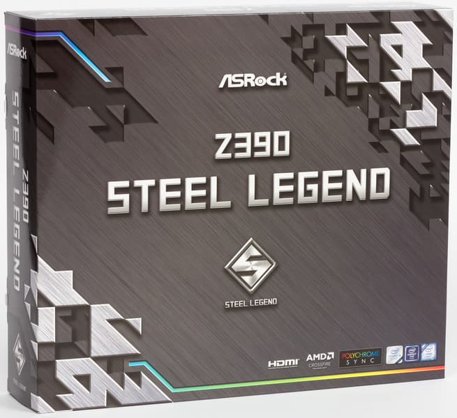 ASRock Z390 Steel Legend поставляется в большой, но обычной коробке без излишеств.