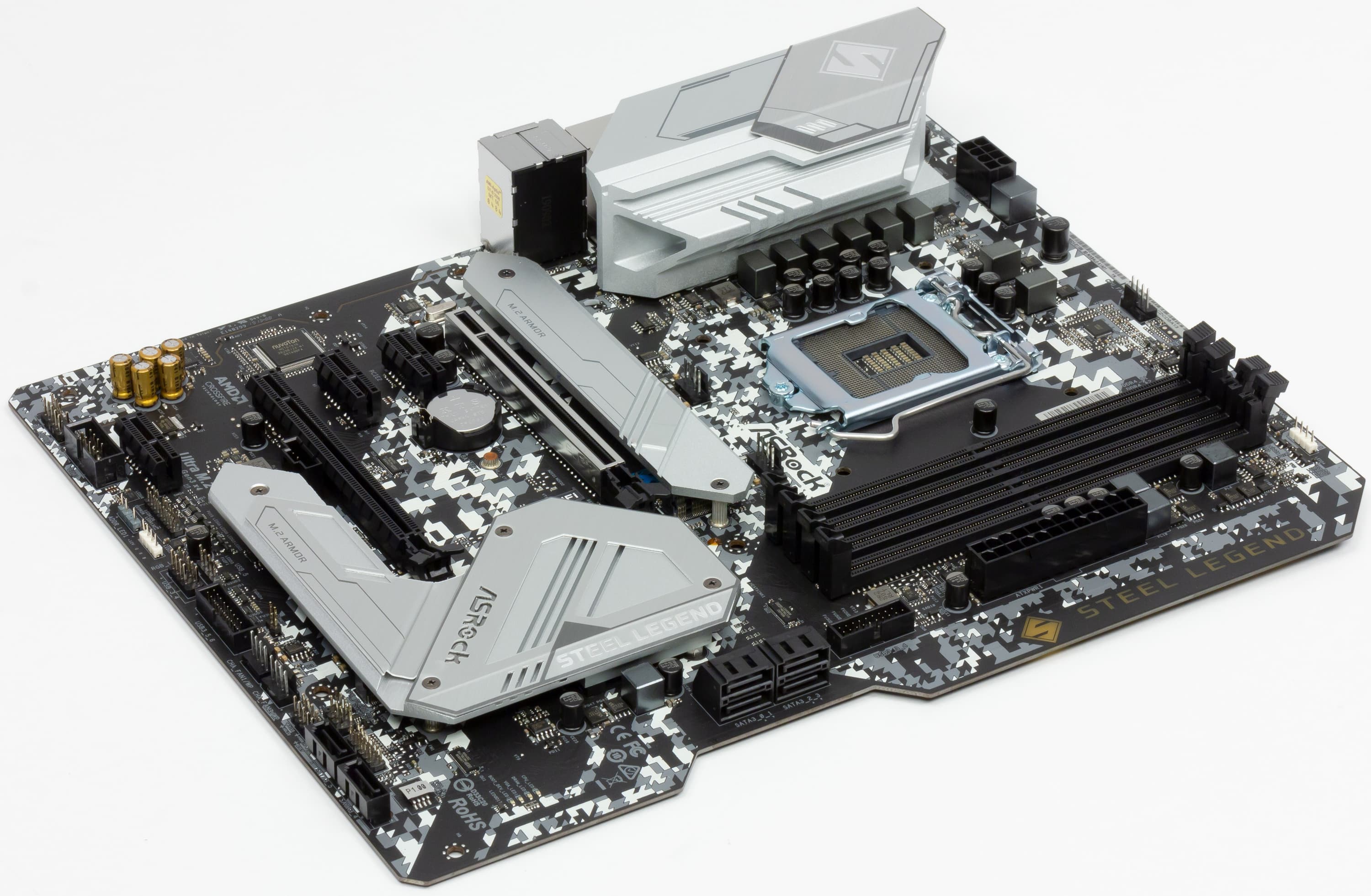 Имеется относительно бюджетная серия — Pro, где возможности топовых чипсетов представлены по минимуму, то есть без наворотов. И между Phantom Gaming и Pro неким особняком стоит серия Steel Legend («Стальная Легенда»). Ну вот как-то очень тяжело сформулировать — чем же она отличается от «Фантомов» и чем круче, нежели «Про». Да, маркетологи постарались нарисовать схему типа «надежная, как сталь, но и не сверкает как более дорогие металлы». Короче, серия Steel Legend позиционируется также для геймеров, но которым не нужны «выпендрежи» типа разгонов, крутых сетевых адаптеров и т. д., а чтобы компьютер служил долго, работал стабильно, ну и хорошо охлаждался.