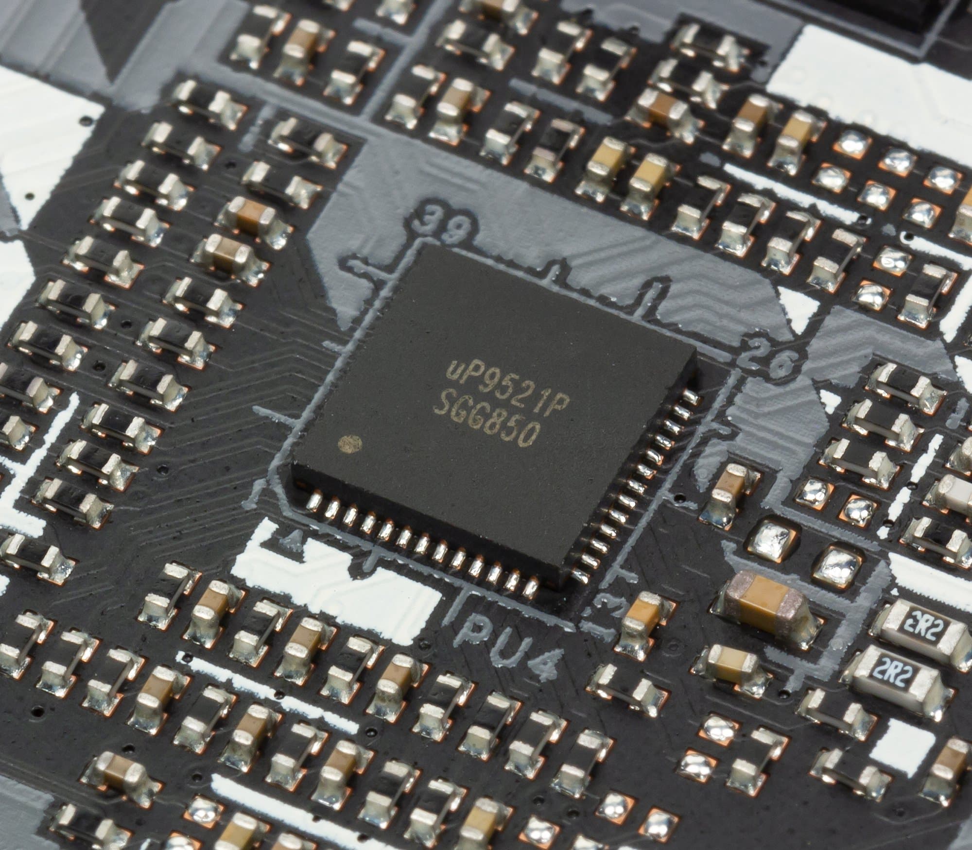 Управляет данной схемой цифровой контроллер uP9521P от uPI Semiconductor.