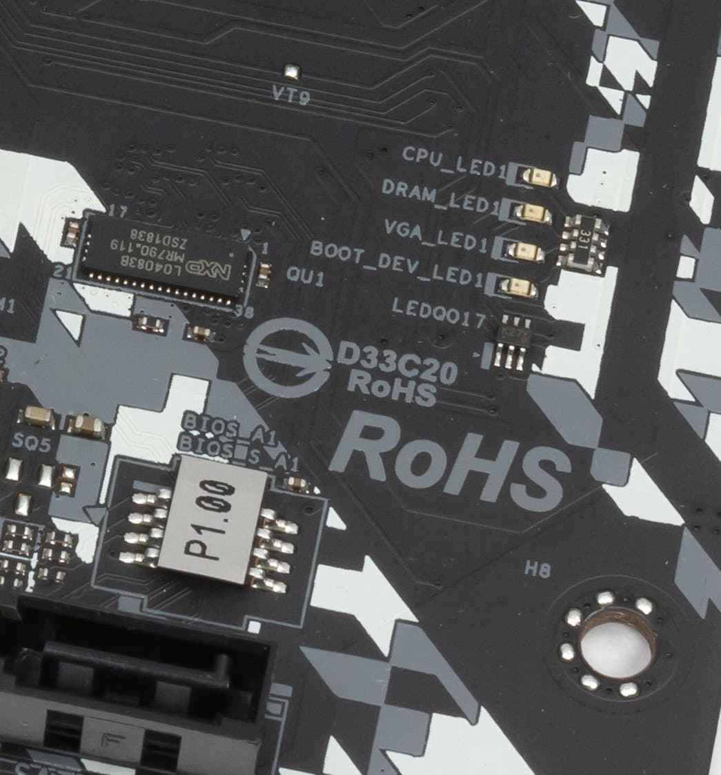 Как мы видим, по сравнению со своими топовыми аналогами из семейств Taichi и Phantom Gaming плата имеет весьма скудный набор портов, разъемов и т. п. Собственно, уже даже по этому признаку просматривается принадлежность к среднему сегменту.