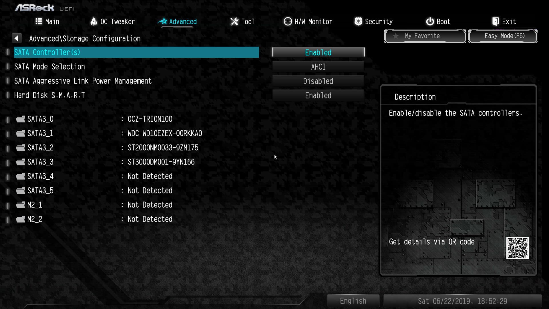 Всего у платы 6 разъемов Serial ATA 6 Гбит/с + 2 слота для накопителей в форм-факторе M.2. (Имеется еще один слот M.2, но он предназначен для контроллеров беспроводных сетей Wi-Fi/Bluetooth.)