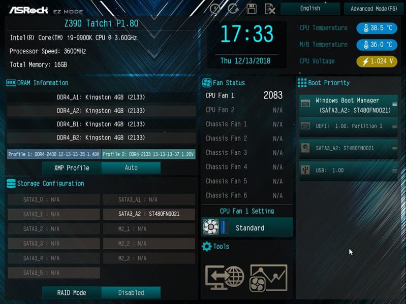 Комплект также обычный для материнских плат среднего уровня, включающий многоязычное руководство пользователя и диск. Не очень понятно, кому сейчас нужны эти книжки, когда все можно скачать из интернета — ну, разве что новый компьютер будет собираться с нуля в сферическом вакууме. Диски вообще абсурдны, потому что CD/DVD-приводов в современных компьютерах давно нет, а ПО успеет 2-3 раза обновиться, пока плата с диском дойдет до покупателя: так что все равно придется первым делом идти на сайт производителя и скачивать все драйверы и фирменные утилиты. Впрочем, Windows 10 прекрасно определила все устройства этой платы, драйвера искать не понадобилось. Также в комплекте идут традиционные SATA-кабели, «заглушка» на заднюю панель с разъемами, три винтика для крепления M.2-накопителей, антенны для беспроводного сетевого адаптера и мост Nvidia SLI (старого образца, для видеокарт GeForce RTX 2xxx он уже не подойдет).