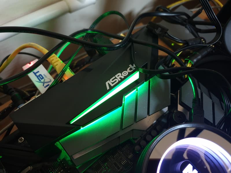 Размеры этого радиатора настолько велики, что его с избытком хватает для охлаждения Z390. Под краями радиатора организована загадочно сияющая подсветка.
