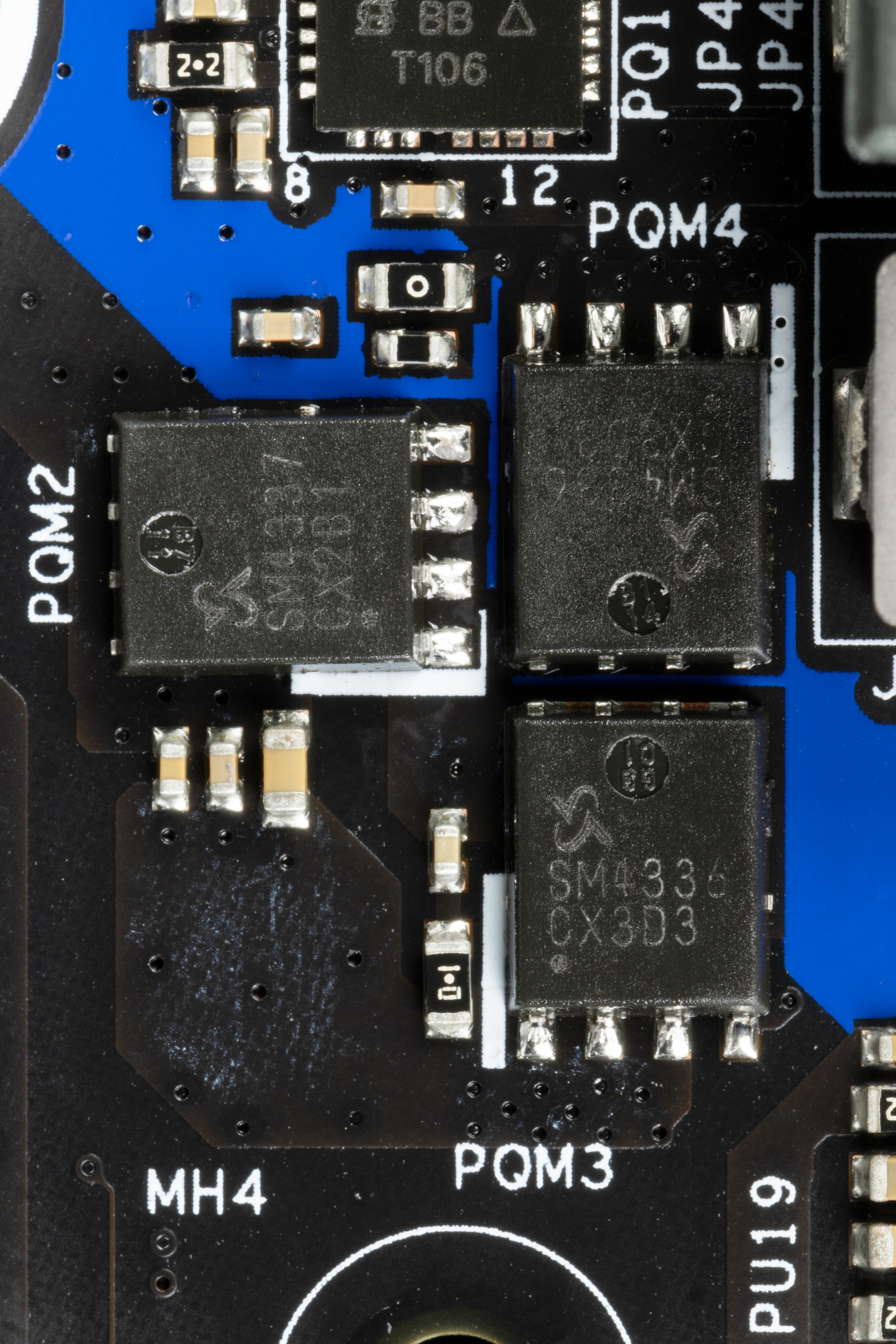 Одна фаза питания VCCIO имеет уже не сборку, а набор из трех полевых транзисторов от Sinopower и свой ШИМ-контроллер.