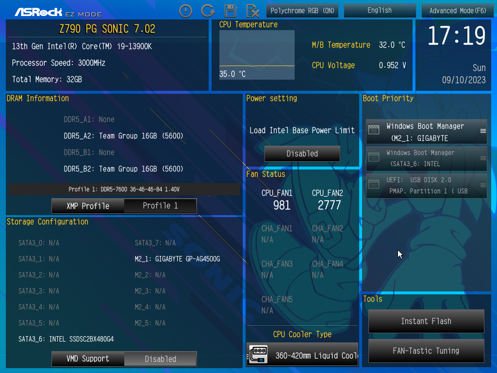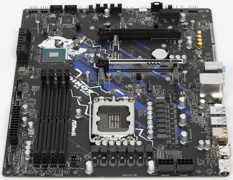 ASRock Z790 PG (Phantom Gaming) Sonic — эффектная материнская плата на топовом чипсете Intel Z790. Поддержка периферии тут минимальная (за исключением количества портов SATA), никаких наворотов нет, поэтому и стоимость платы минимум раза в 2 ниже, чем у флагманских моделей на том же чипсете — 25-30 тысяч рублей на момент подготовки обзора.