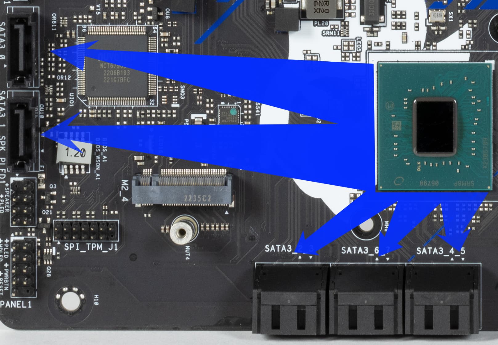 - порты SATA_1/2/3/4/5/6/7/8: (4 штатных линий SATA + 4 линии PCIe 3.0);