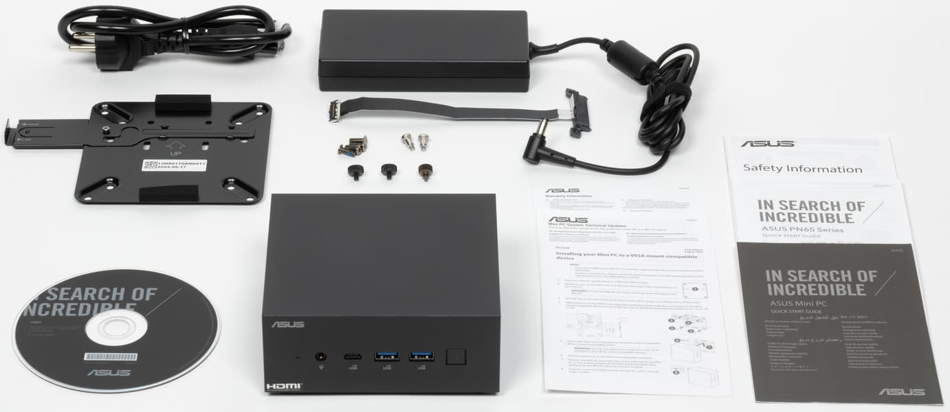 Но сегодня речь пойдет о модели на платформе Intel. Новые процессоры семейства Core Ultra «прописались» и в Asus NUC, и в новых ExpertCenter линейки PN65. Первые — более разнообразные: здесь есть даже линейки с дискретной графикой. И, например, пара портов Thunderbolt для них является обыденностью. А вот PN65, равно как и предшествующий PN64, ограничен 10-гигабитным USB. Это может показаться экономией на спичках — ведь поддержка Thunderbolt давно уже встроена непосредственно в процессоры Intel. Но цена их вывода наружу разная, а нужны они сейчас далеко не всем, так что и такой способ экономии может быть полностью оправдан.