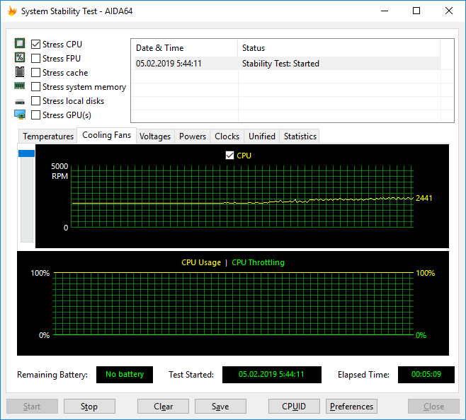 Отметим, что скорость вращения вентилятора в таком режиме постепенно возрастает с 2200 до 2440 об/мин.