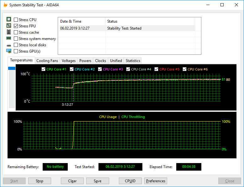 При этом температура процессора постепенно увеличивается до 81 °C, а мощность энергопотребления составляет 35 Вт.