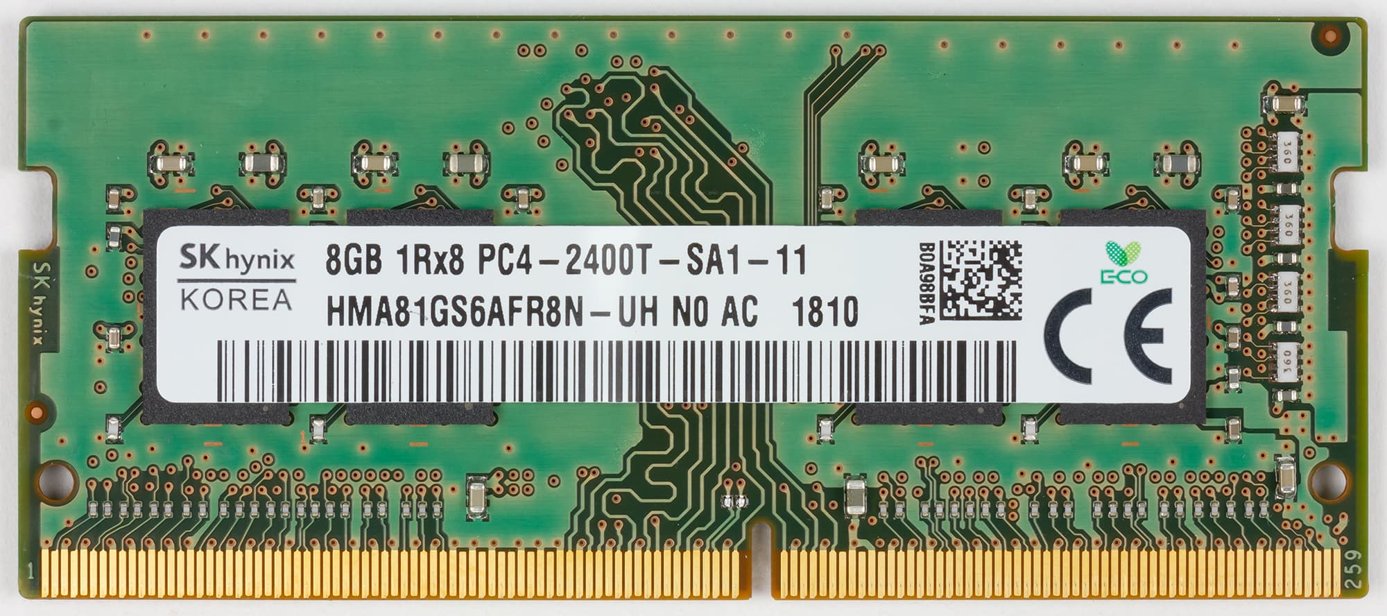 В нашем варианте был установлен только один модуль памяти (SK Hynix HMA81GS6AFR8N-UH) объемом 8 ГБ. Естественно, память работала в одноканальном режиме.