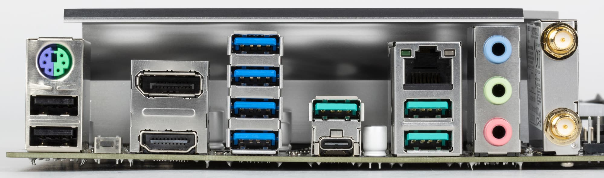 - 3 порта USB 3.2 Gen2: все реализованы через CPU и представлены на задней панели портами Type-A (зеленого цвета);