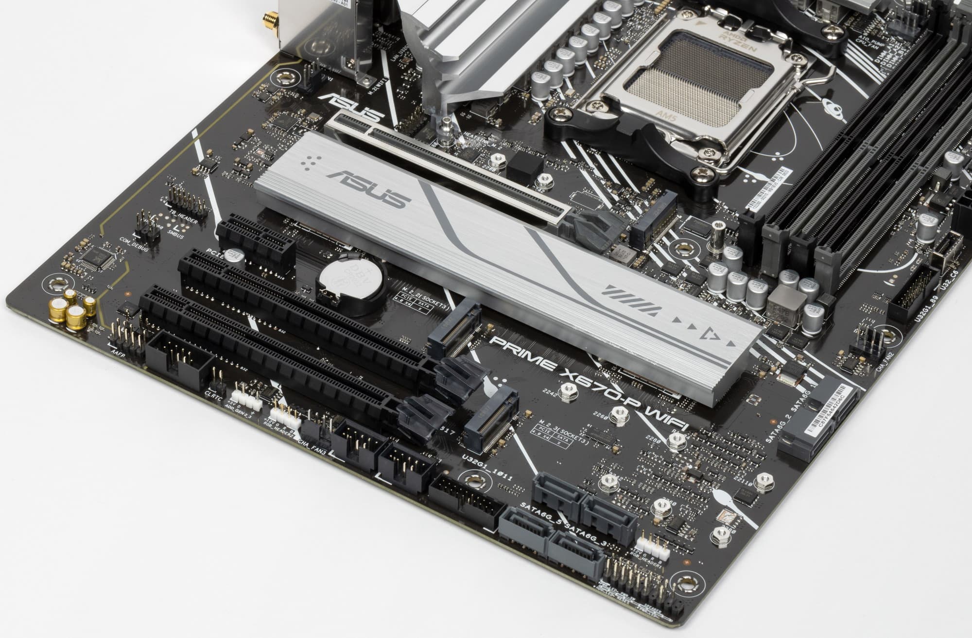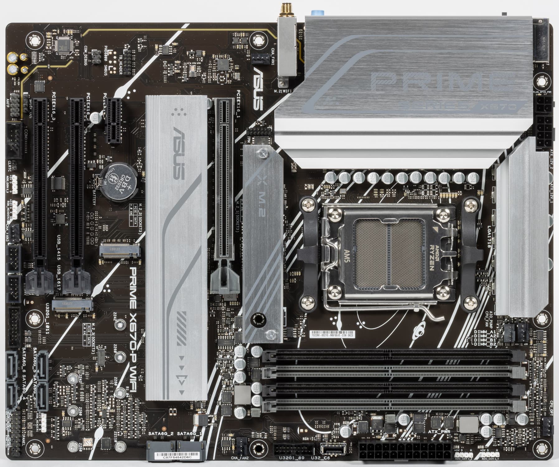 Переходим к самой материнской плате Asus Prime X670-P WiFi, которая относится к малобюджетной серии Prime, поэтому перед нами один из самых дешевых вариантов матплат на базе AMD X670 (ну, разумеется, с точки зрения Asus, на рынке могут быть и варианты на X670 с меньшей стоимостью).