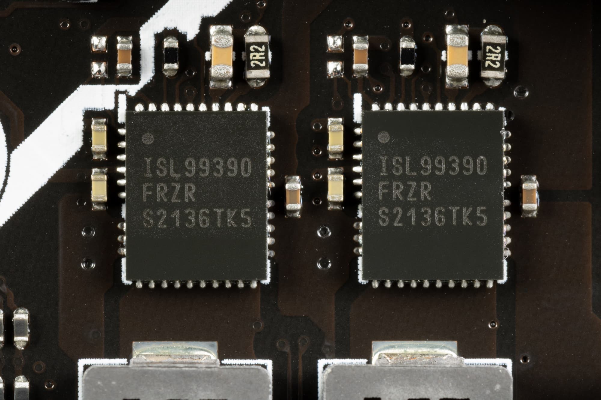 2 фазы питания SoC образуют также суперферритовые дроссели и сборки ISL99390 от Renesas (ex-Intersil) на 90 А.