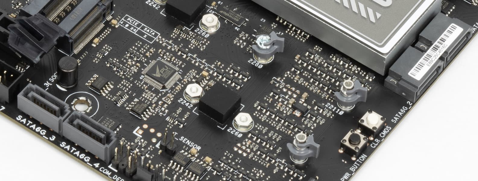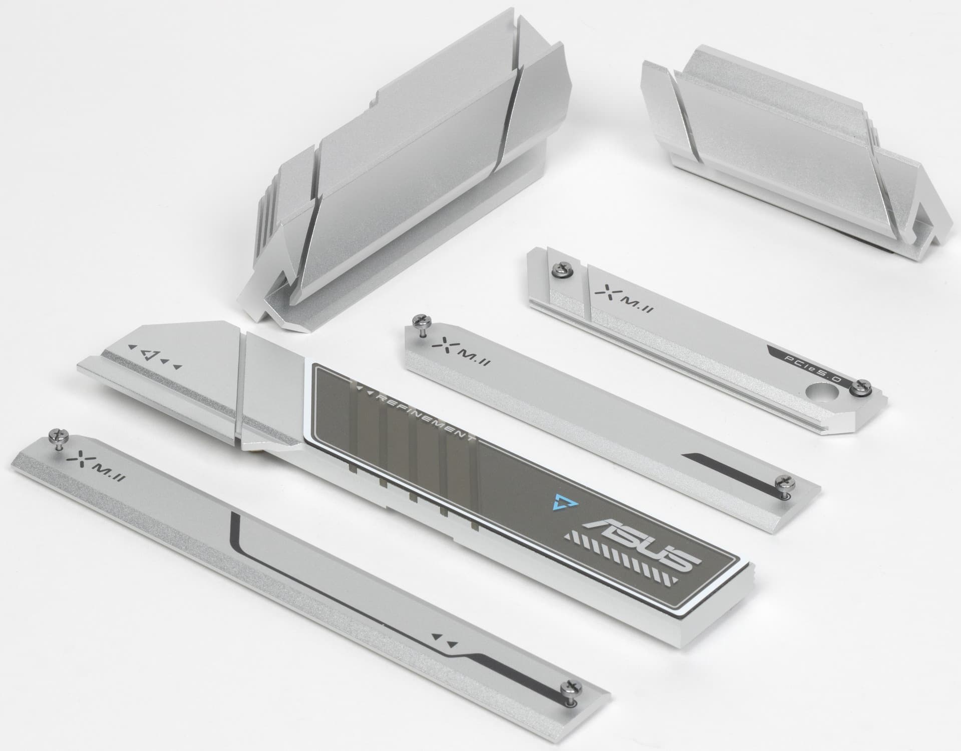 Все M.2 слоты на матплате имеют радиаторы. M.2_1 и M.2_2 обладают отдельными радиаторами, когда как остальные M.2 слоты имеют общий радиатор.