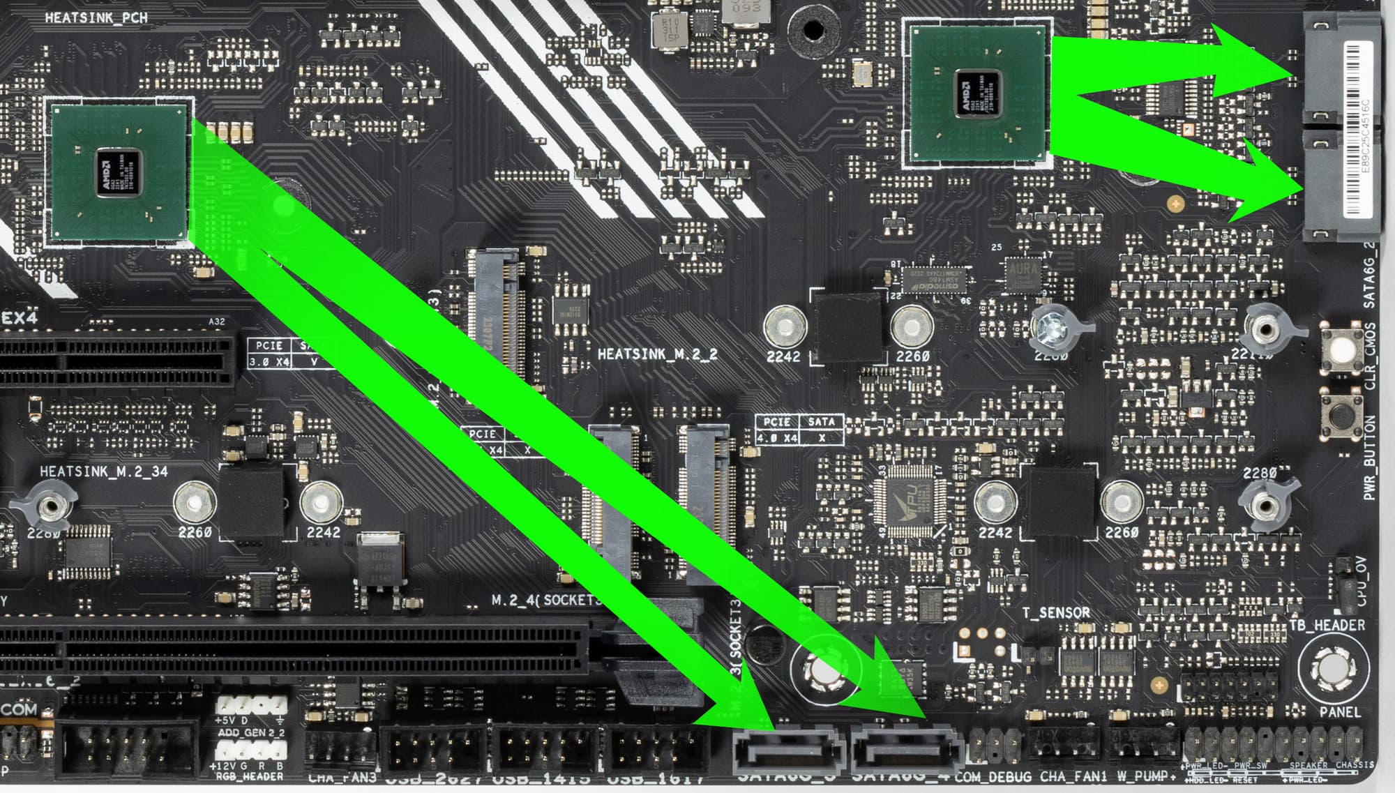 - Остальные 20 линий распределяются как 12 PCIe 4.0 + 8 PCIe 3.0 (включая до 8 портов SATA).