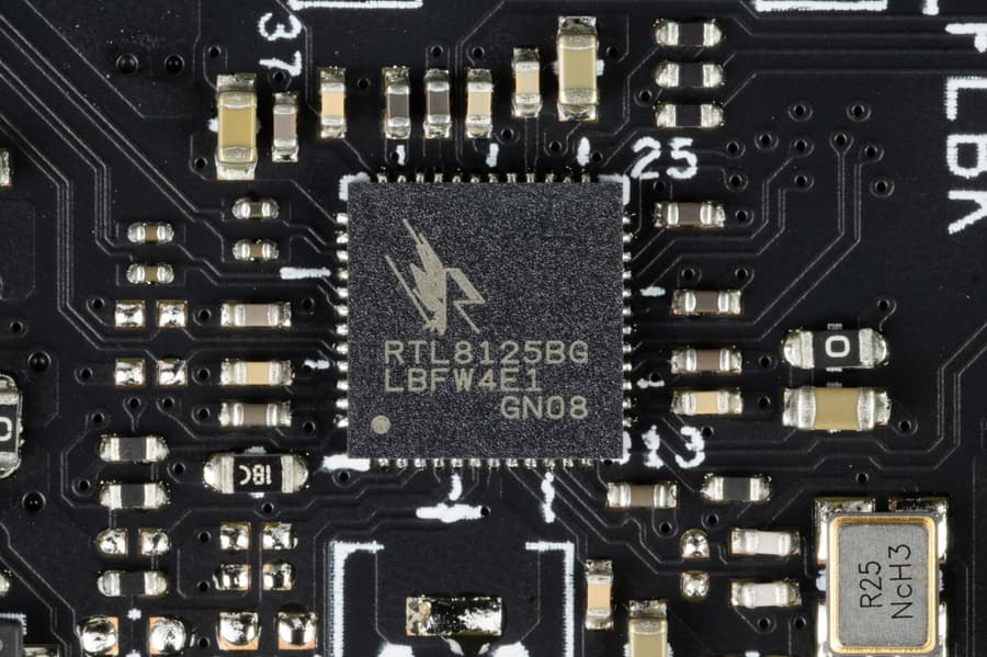 Материнская плата оснащена средствами связи хорошо. Имеется скоростной Ethernet-контроллер Realtek RTL8125BG, способный работать по стандарту 2,5 Гбит/с.