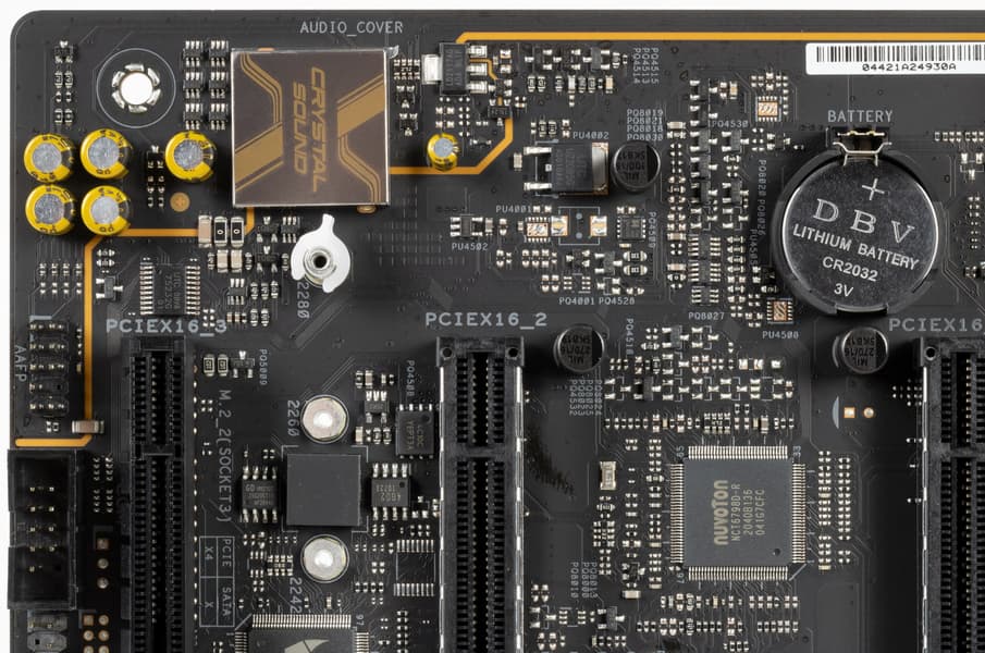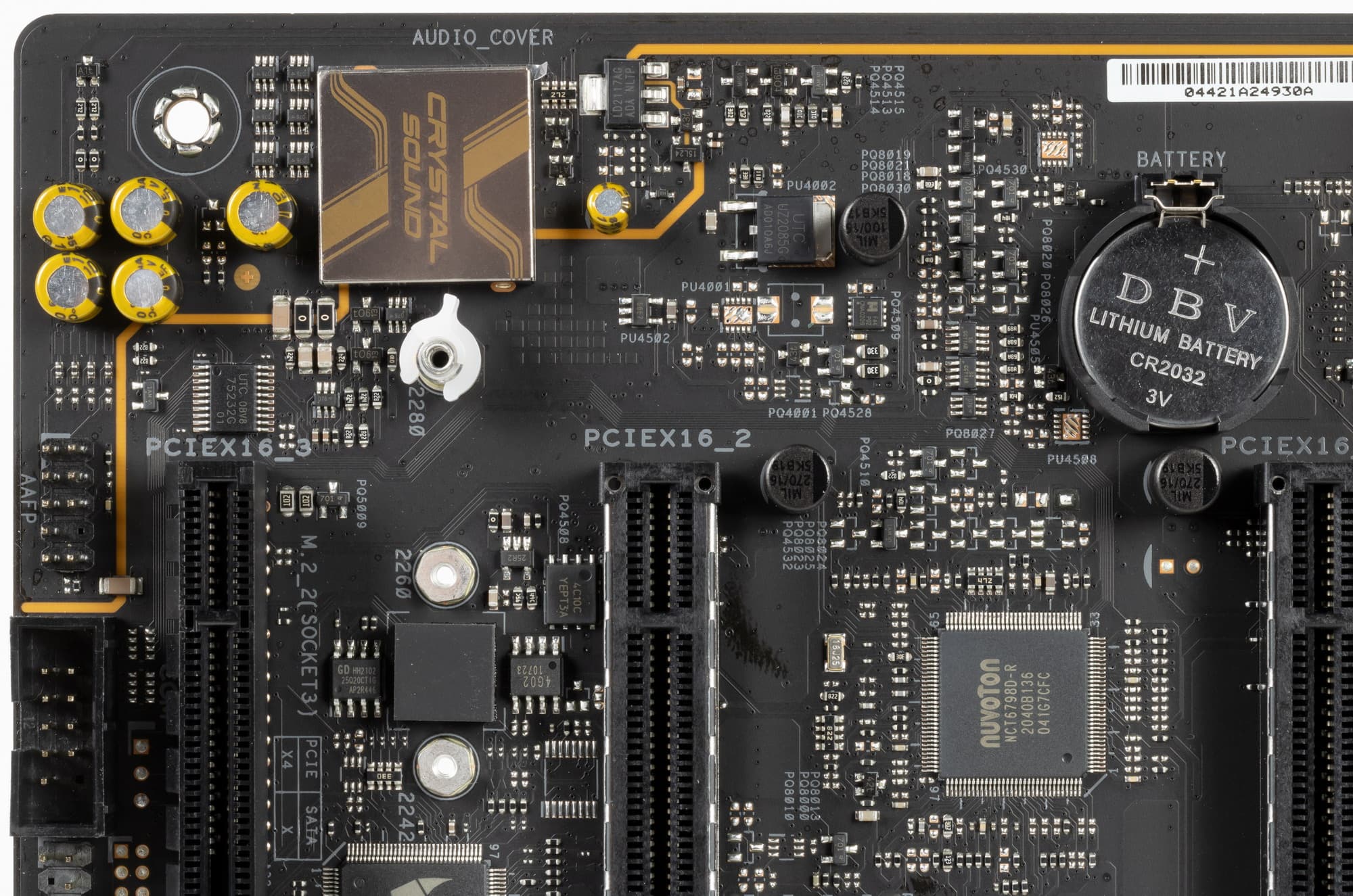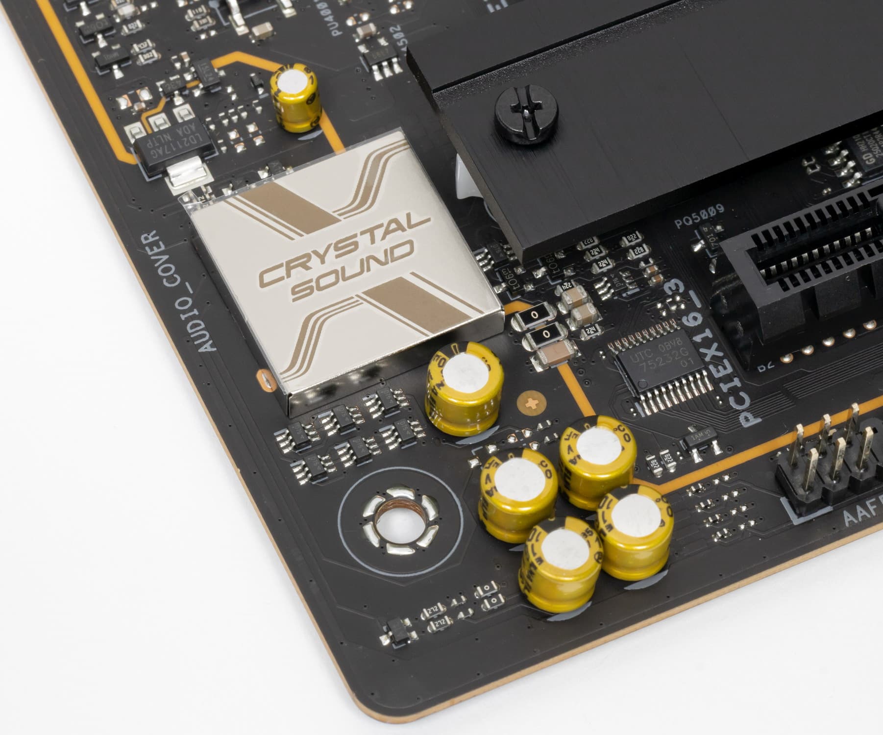 В традициях Asus накрывать микросхему кодека металлическим колпачком с собственным названием аудиоподсистемы, однако в данном случае уже мы видим не SupremeFX, а Crystal Sound.