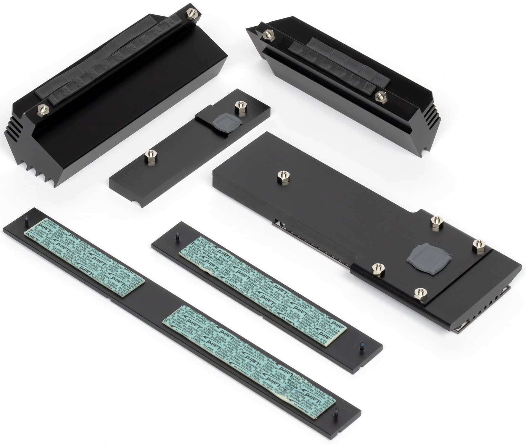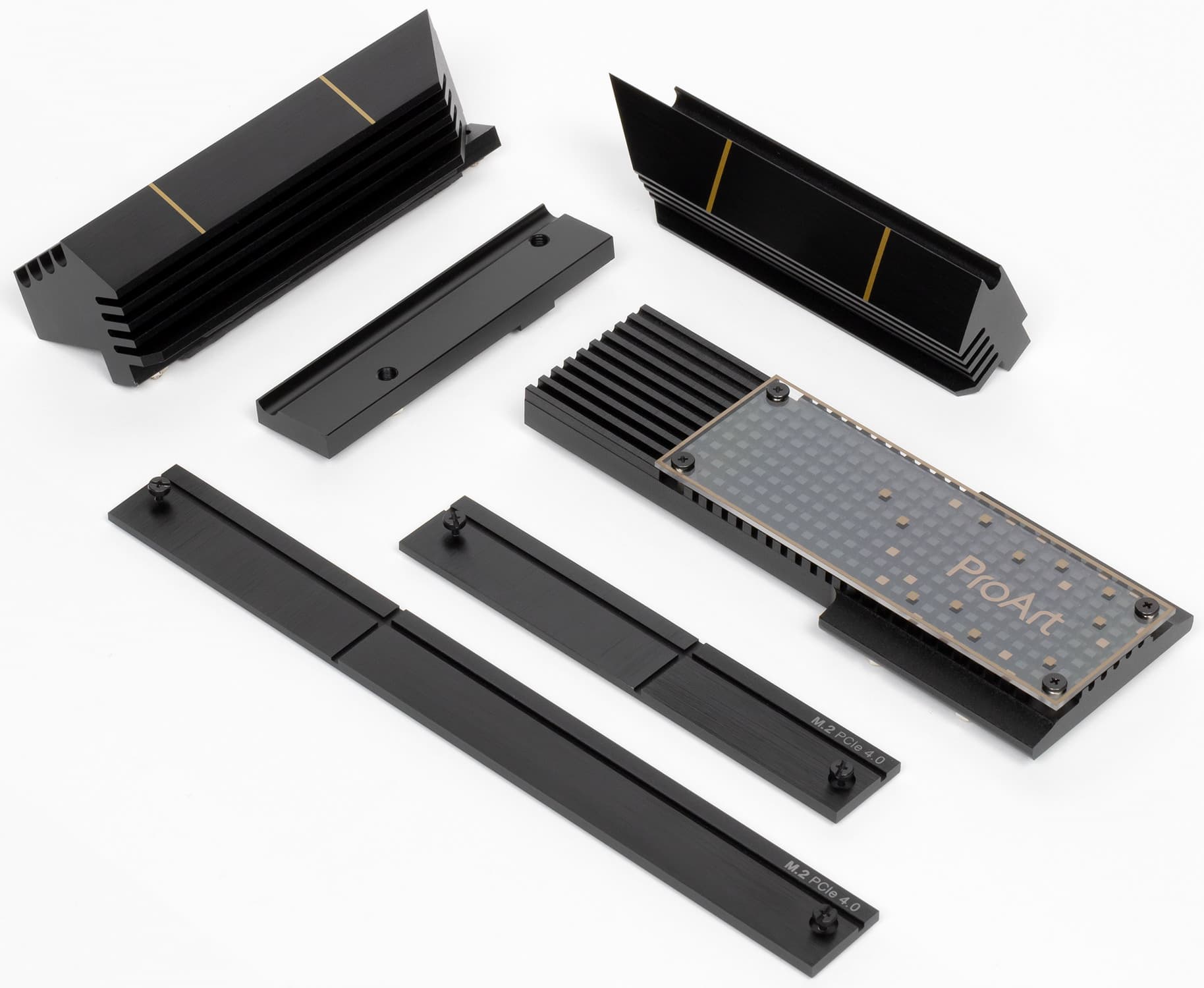 У трех модулей M.2, как я уже выше отмечал, есть свои радиаторы с термоинтерфейсом. Они крепятся отдельно от большого чипсетного радиатора.