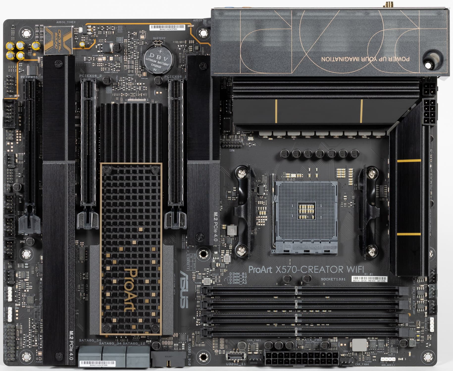 Материнская плата Asus ProArt X570-Creator WiFi — превосходный выбор для рабочих ПК для создания контента, проектирования, моделирования и пр. Вместе с тем, она имеет отменную поддержку авторазгона, что явно понравится геймерам и оверклокерам.