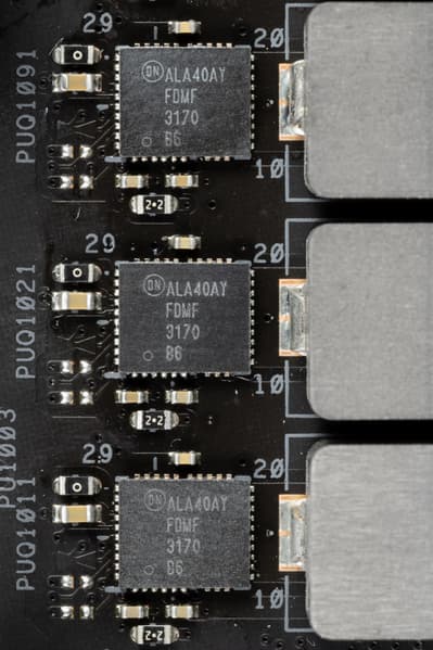 Каждая фаза имеет по транзисторной сборке ON FDMF3170 (до 70А).