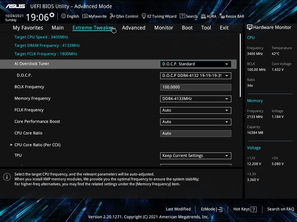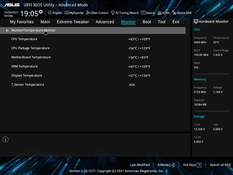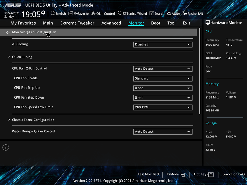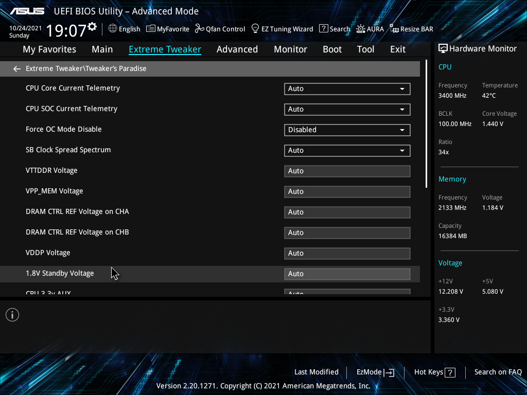 Отчетливо видно, что авторазгон работает отлично (с 3,4 до 4,6 ГГц — это просто потрясающе для не-игровой материнки!). При этом были и разовые всплески частот по ядрам и выше. Также следует отметить, что данная плата от Asus способна четко реализовать контроль за частотой IF (Infinity Fabric), держа ее не выше 1800 МГц (разумеется, если она выставлена в режиме Auto) и выставляет множитель для частоты памяти автоматически.
