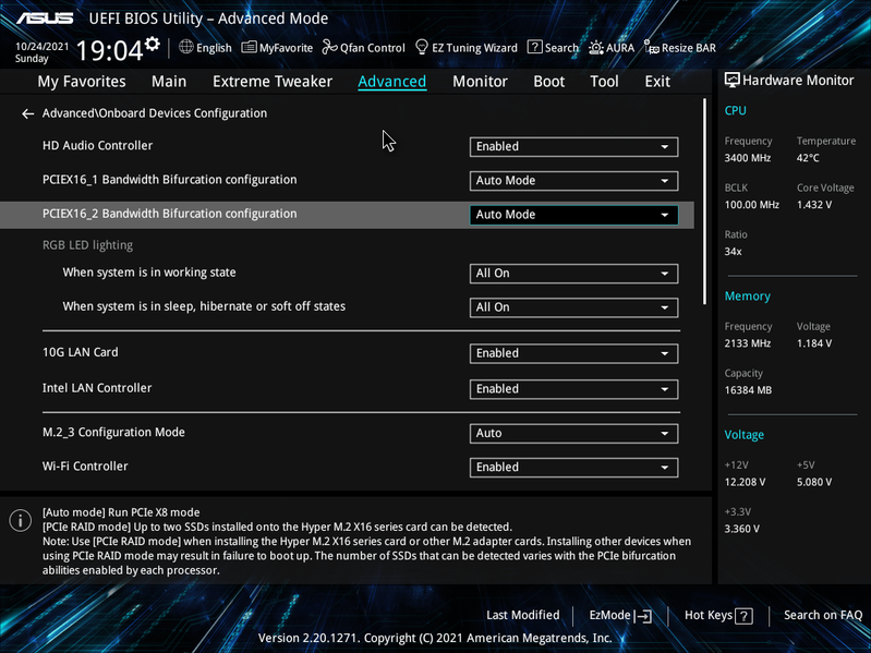 - Слот PCIe x16_1 имеет 8 линий, слот PCIe x16_2 имеет 4 линии, порт М2_3 имеет 4 линии;