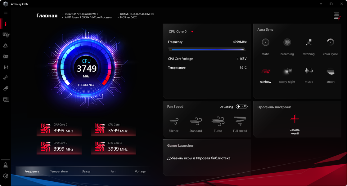 Мы видим удивительное явление: плата, созданная для рабочих вещей, для созидания контента и т.п., позволяет получить стабильно очень высокие частоты работы процессора! При этом даже самого топового на сегодня из всего, что есть у AMD! Вот что значит отменная система питания!