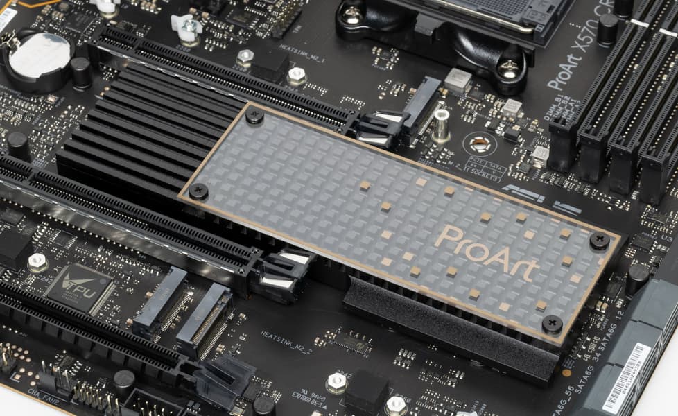 Все M.2 слоты имеют радиаторы. Верхний M2_1 обладает отдельным радиатором, когда как два нижних слота M.2 имеют общий радиатор.