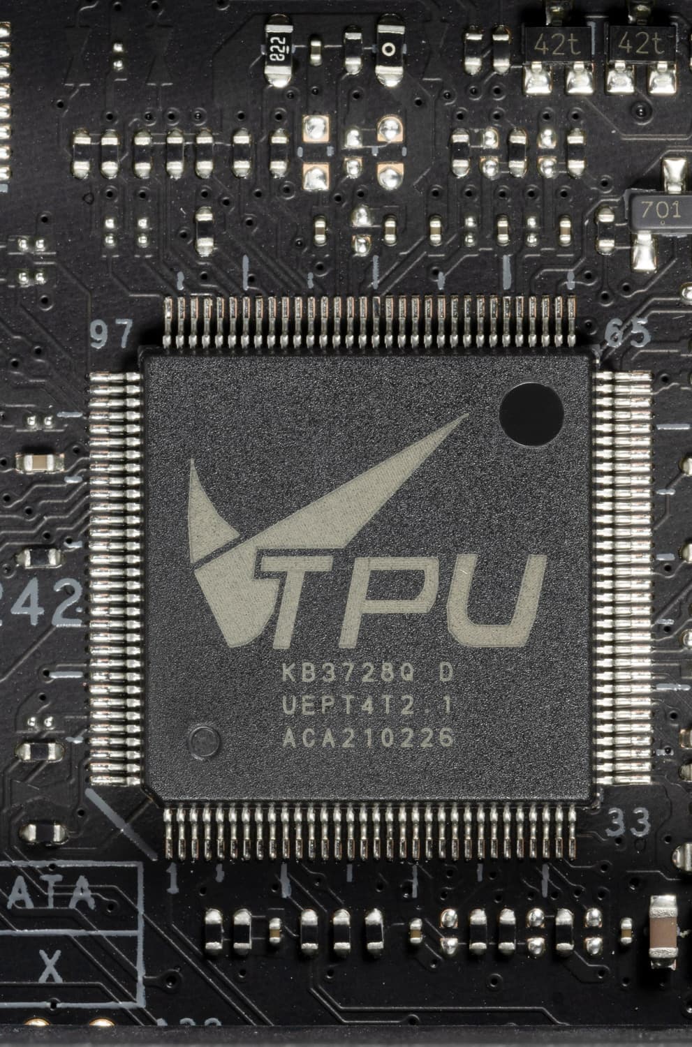 Хорошо известно, что инженеры Asus никогда не пользуются удвоителями фаз для управления огромным их количеством, ведь ШИМ-контроллеры в большинстве своем умеют работать с 8-ю (реже с 12) фазами (в данном случае с 8-ю). Практически на всех материнских платах среднего и топового уровней можно найти фирменный цифровой контроллер TPU, который как раз и занимается умными сборками фаз питания для ШИМ-контроллера.
