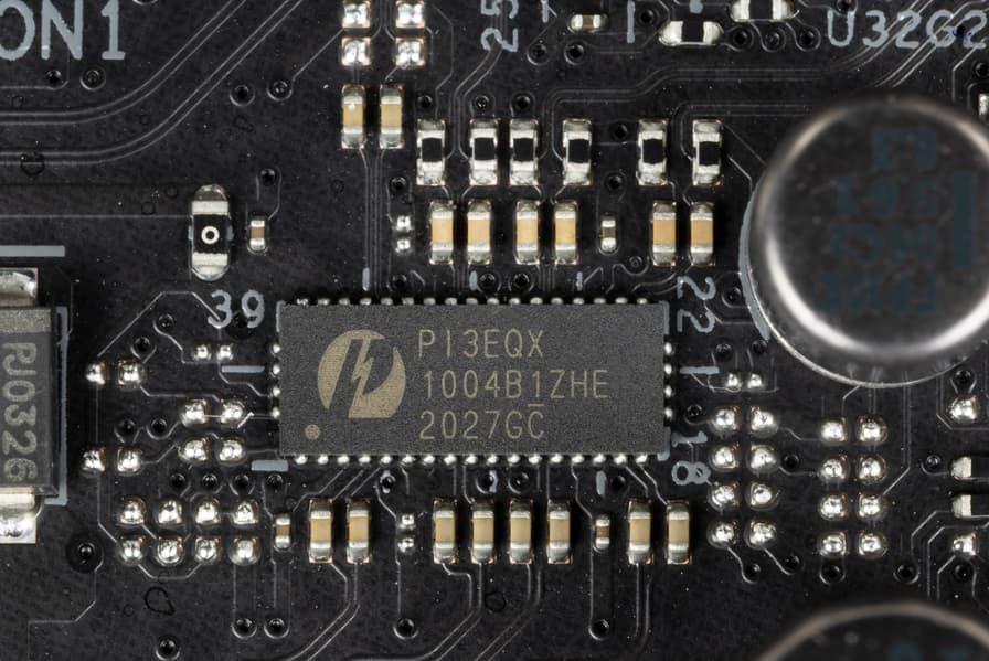 Для поддержания стабильности шины PCIe 4.0 имеются усилители сигнала от Diodes Inc (ex-Pericom).