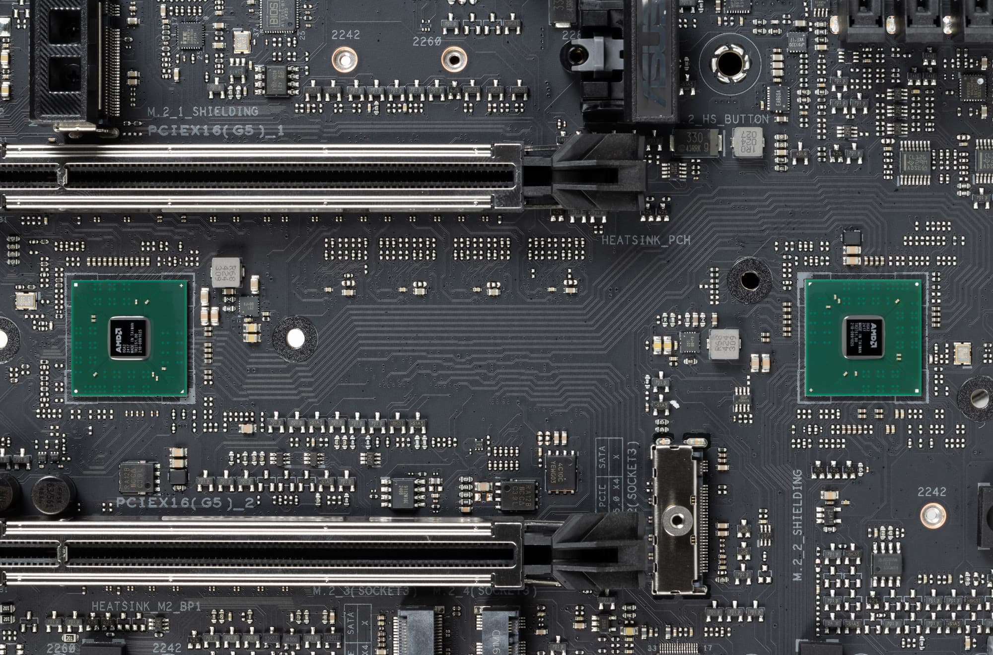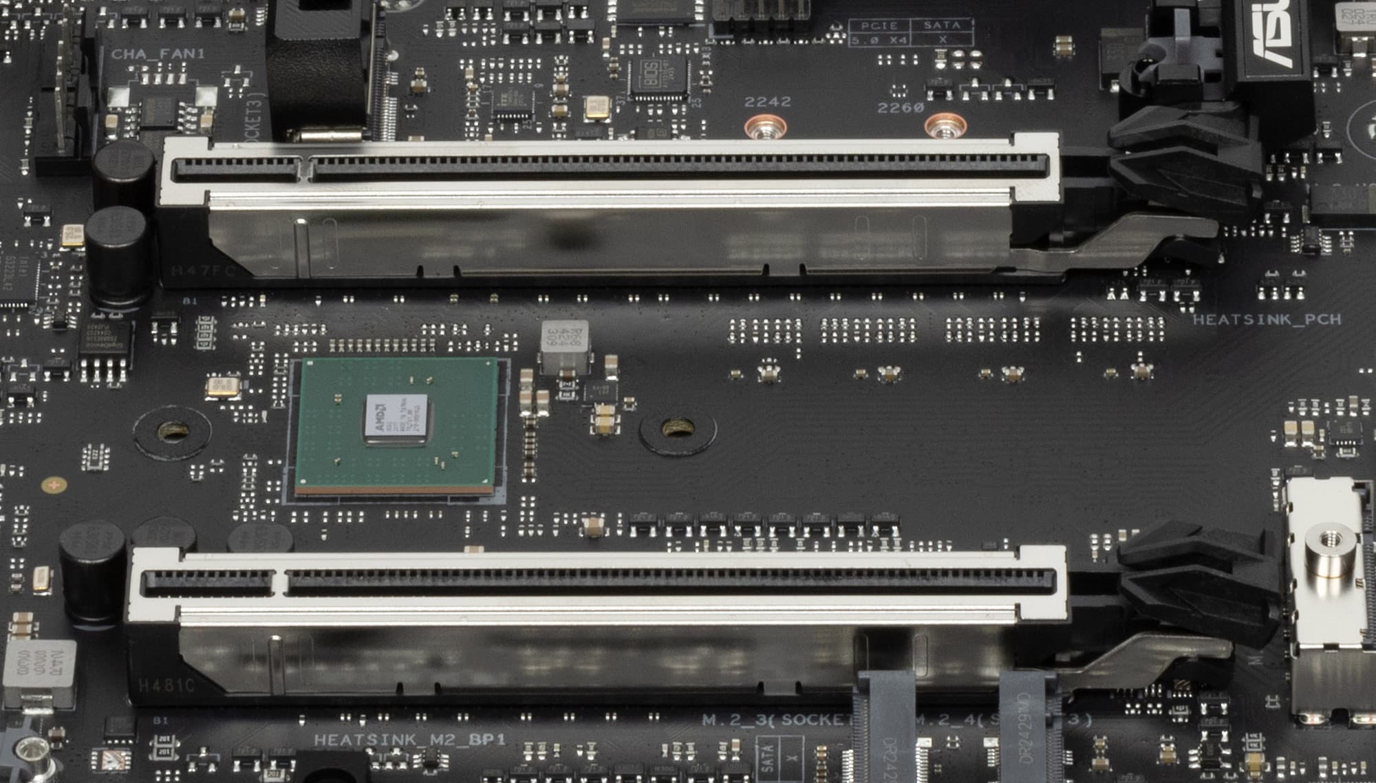 Особо обращу внимание на то, что слот M.2_2, получающий данные от процессора, делит ресурсы со слотами PCIe x16_1/2, о чем я говорил уже выше. Это связано как раз с тем, что контроллер USB4 требует 4 линии PCIe 4.0, и инженеры решили «отнять» их у CPU (поэтому у того свободно поддерживается только один слот M.2_1), а не у X870E.