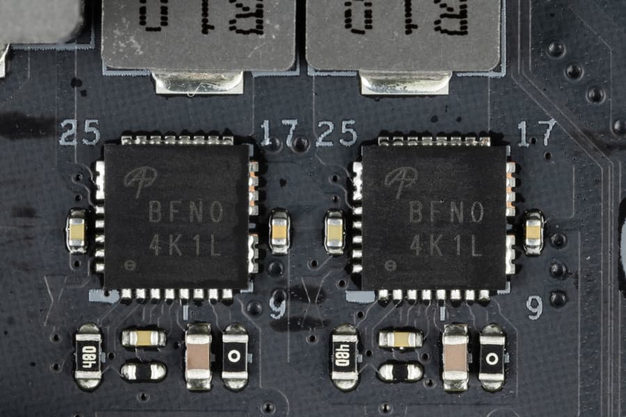 2 фазы питания SoC образуют также суперферритовые дроссели и сборки AOZ5516QI от Alpha&Omega Systems на 55 А.