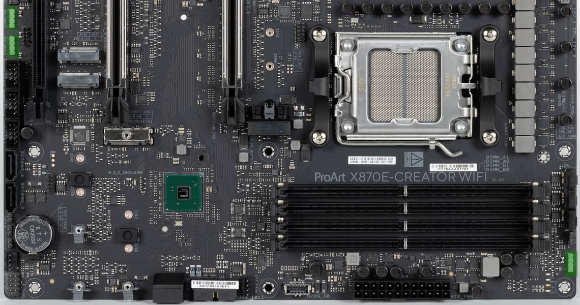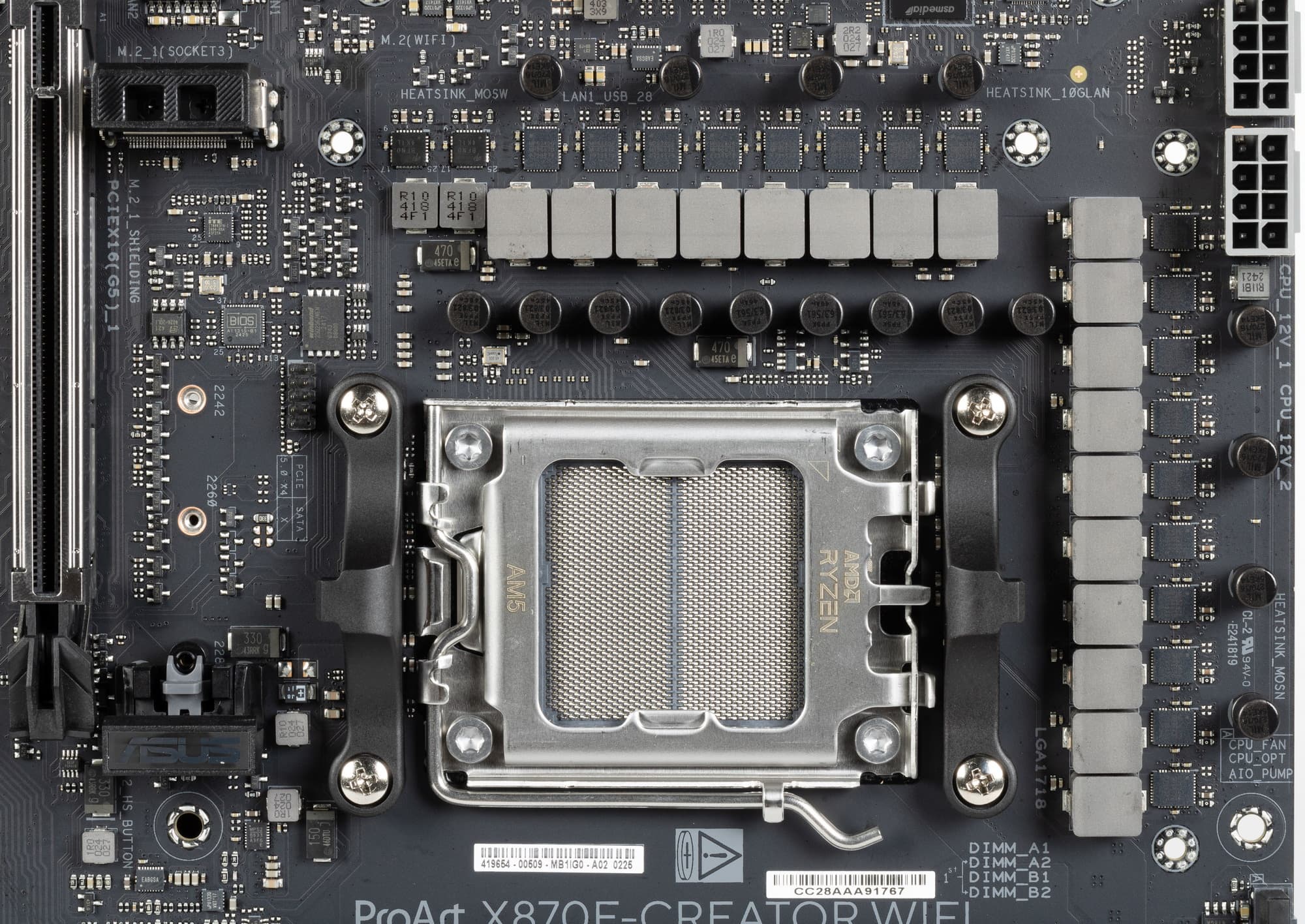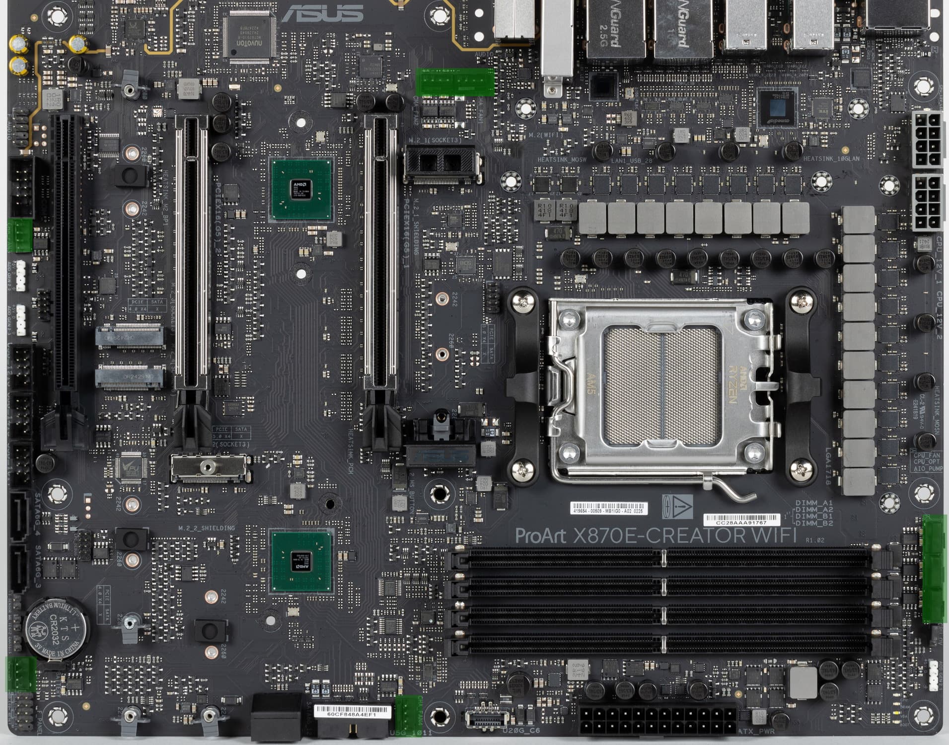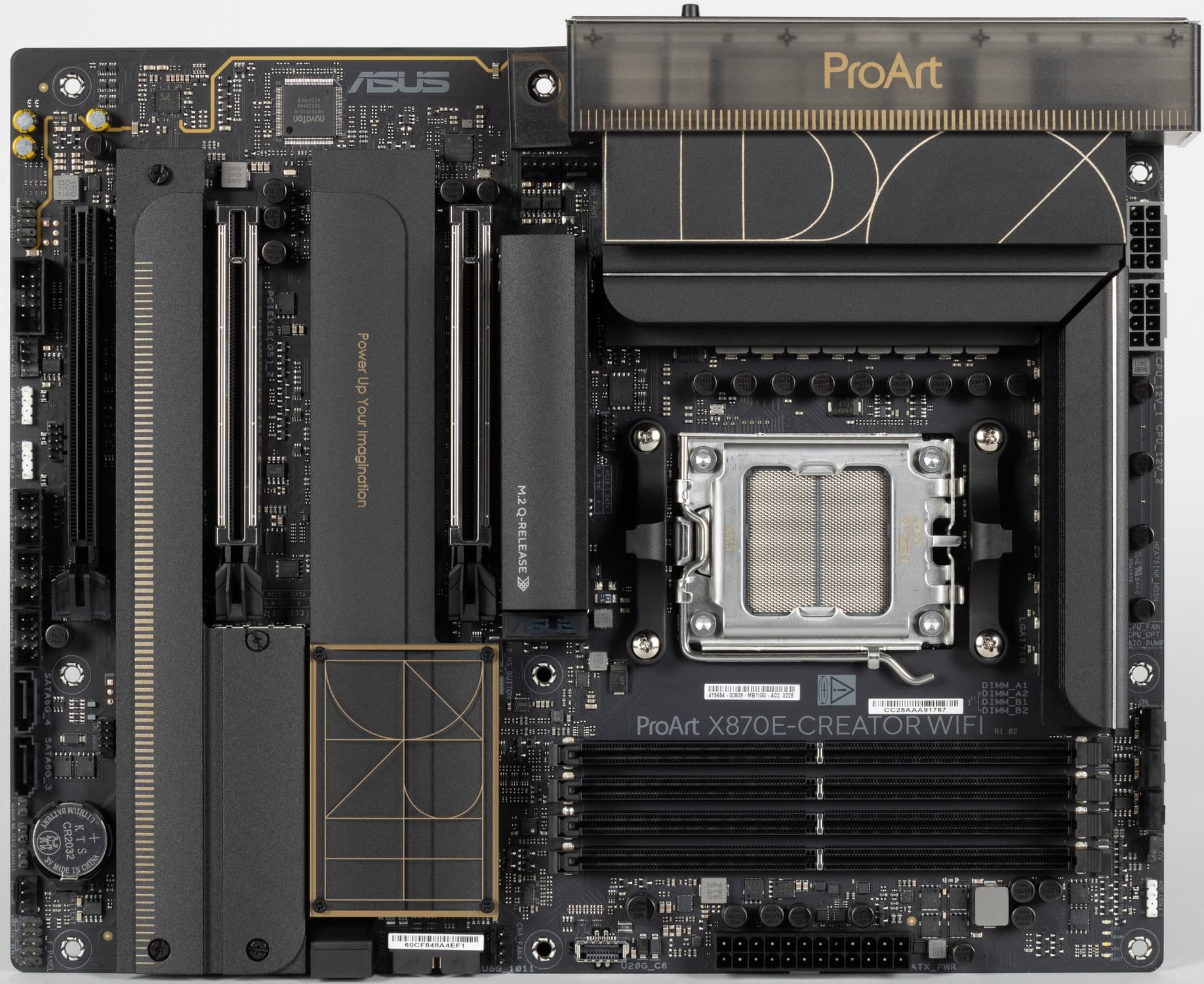 Материнская плата Asus ProArt X870E-Creator WiFi основана на топовом чипсете AMD X870E и позиционируется для работы с флагманскими процессорами AMD платформы AM5. Это решение для рабочих ПК очень высокого уровня.