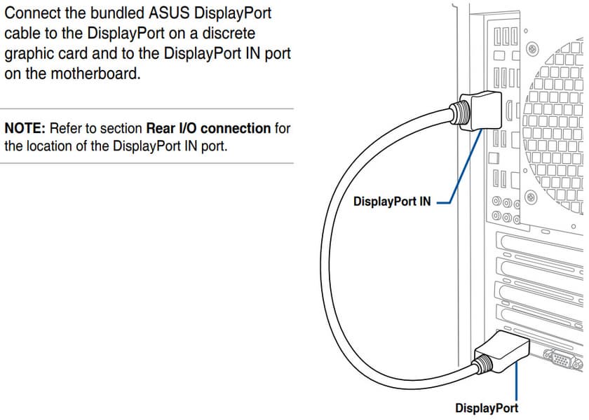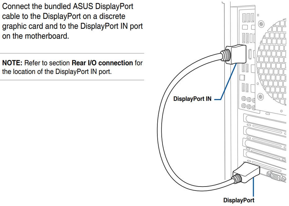 Если у вас используется дискретная видеокарта, то ее вывод DP следует соединить со входом DP на матплате, для чего в комплекте поставки имеется соответствующий адаптер.