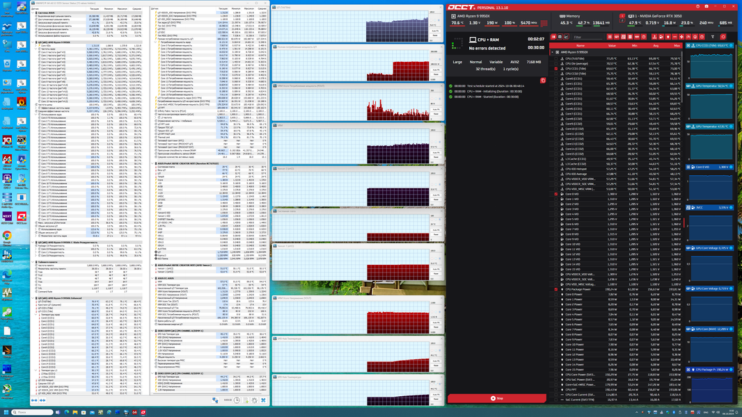 Так вот, ИИ посчитал, что если выставлять тупо режимы работы, как заложено просто в BIOS согласно постановлениям AMD и лично Лизы Су (ну через AMD PBO), то получается как-то неэкономное расходование ресурсов, и исходя из конкретной мгновенной стрессовой нагрузки от ОССТ, ИИ стал резать частоты работы и потребление, в результате чего на диаграммах получился забавный «забор», при этом в целом потребление уменьшилось, ну и частоты до 5,1 ГГц по ядрам упали.