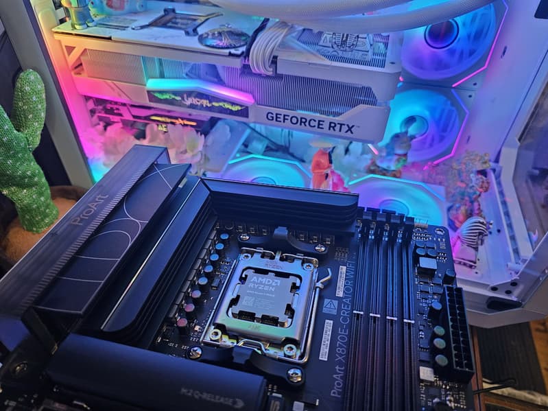 Сетевые возможности включают проводные контроллеры 10 и 2,5 Гбит/с и беспроводной Wi-Fi 7 + Bluetooth 5.4. Поддержка USB4 позволяет передавать данные на скорости до 40 Гбит/с и выводить изображение на монитор или телевизор через порт USB Type-C, в том числе предварительно заведя на плату выход дискретной видеокарты. В числе плюсов Asus ProArt X870E-Creator WiFi можно упомянуть возможности для подключения дополнительных ARGB-устройств.