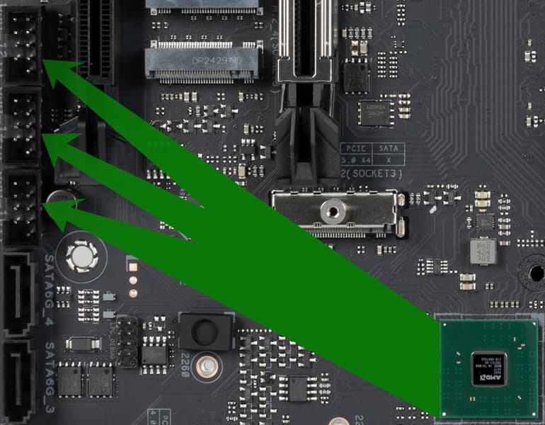 Плюс 19 линий PCIe, выделенные на поддержку иной периферии. Итого, у X870E в данном случае реализовано 27 высокоскоростных портов.