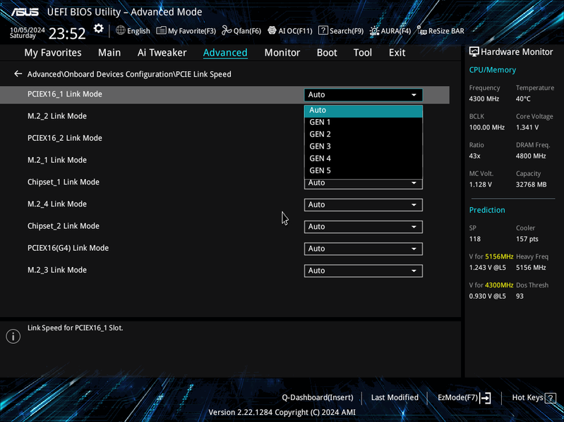 Надо особо отметить, что в случае установки видеокарты в PCIe x16_2 при пустом PCIe x16_1, оба они все равно получают по 8 линий. Мы помним, что все эти линии PCIe версии 5.0.