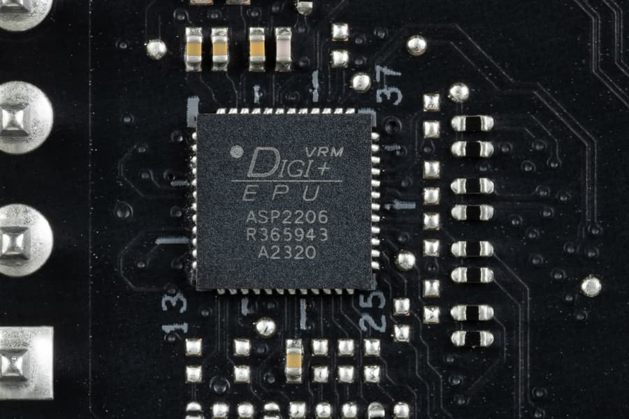 Практически на всех материнских платах среднего и топового уровней можно найти фирменный цифровой контроллер TPU, который как раз и занимается умными сборками фаз питания для ШИМ-контроллера. В частности тут имеем: