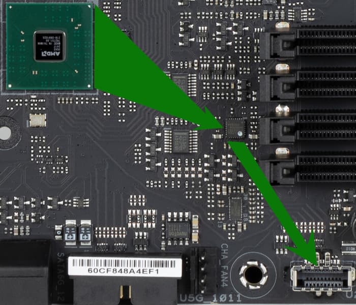 И это еще не все: сам по себе контроллер ASMedia ASM4242 имеет пропускную способность до 64 Гбит/с, то есть если полностью загрузить 2 порта USB4 (каждый 40 Гбит/с), то мы не получим максимум теоретической пропускной способности. Правда, такой сценарий очень маловероятен, ибо и устройств с полноценной поддержкой USB4 еще по сути нет, и очень мала вероятность ситуации по одновременному задействованию обоих портов USB4.