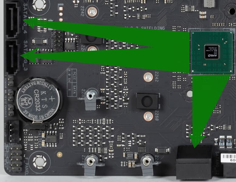 Итак, кроме USB-портов, к которым мы подойдем позже, чипсет X870E обладает 20 PCIe линиями (плюс 4 линии на аплинк с процессором). Считаем, сколько линий уходит на поддержку (связь) с тем или иным элементом: