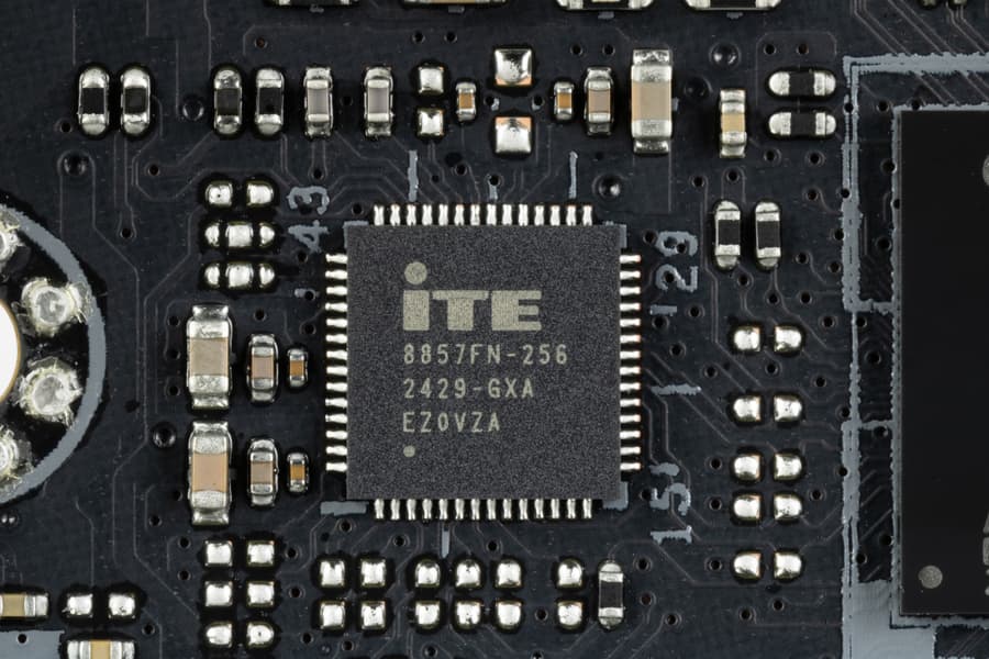 Порт USB 3.2 Gen2x2 в виде Type-C на задней панели оснащен отдельным контроллером IT8857 от ITE, являющимся по сути усилителем питания, дающий вольтаж, способный обеспечить быструю зарядку мобильных гаджетов через него.