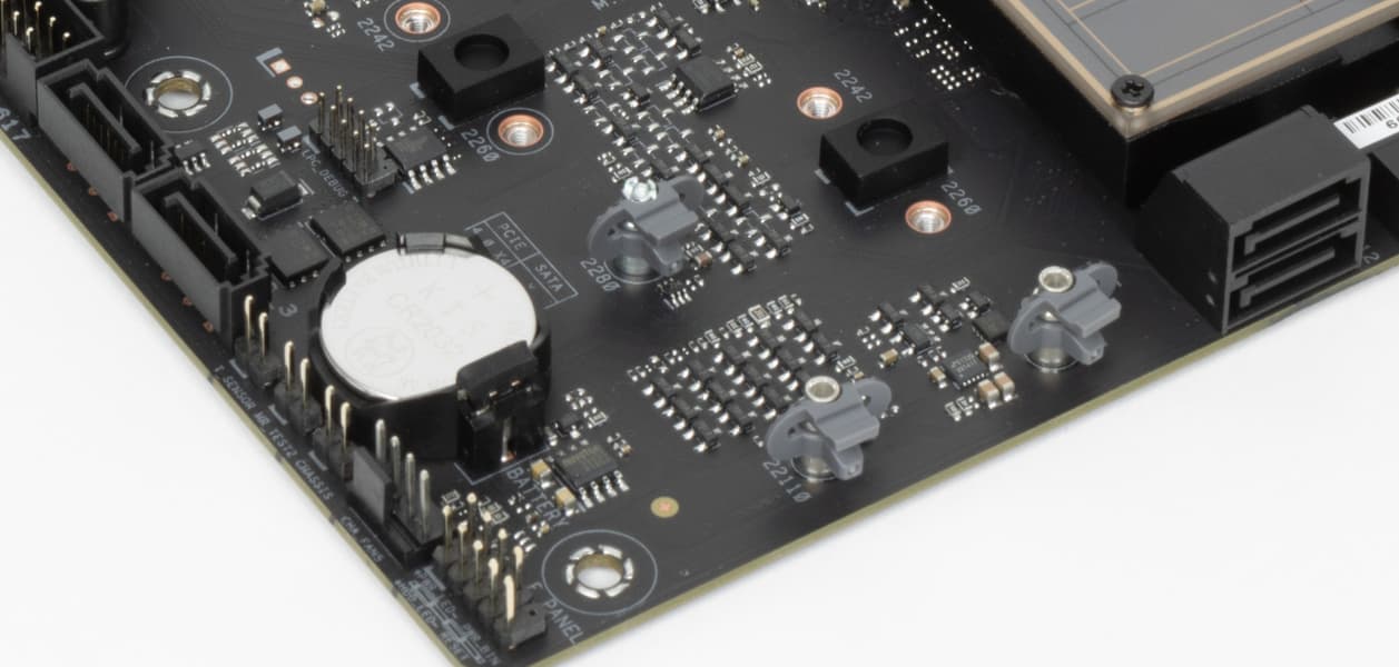 То есть следует отметить, что охлаждение системного чипсета (2 микросхемы) отдельно от охлаждения модулей в слотах M.2.