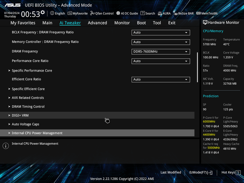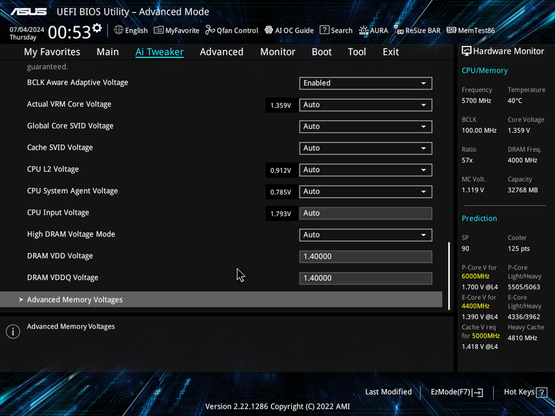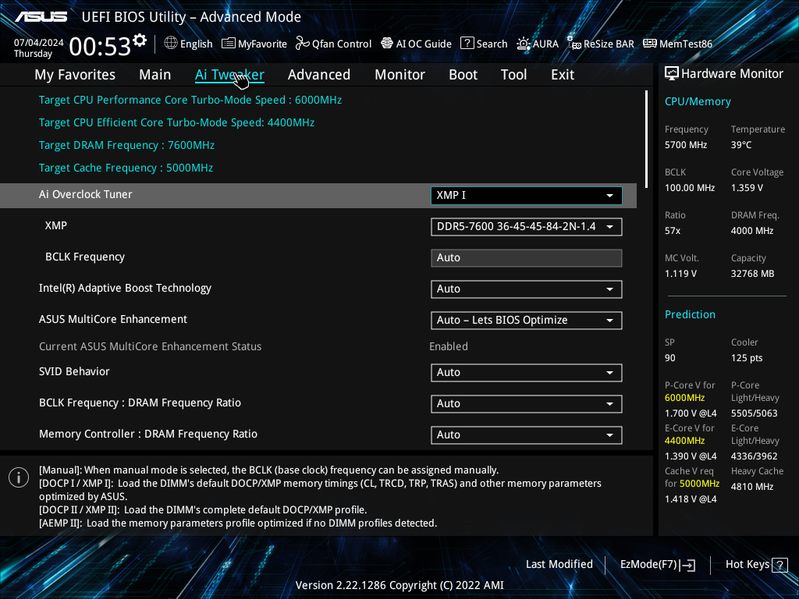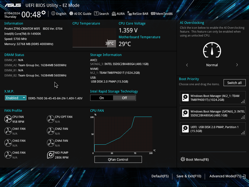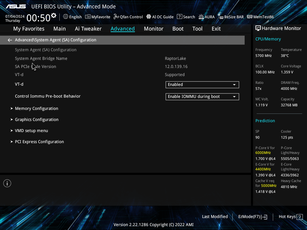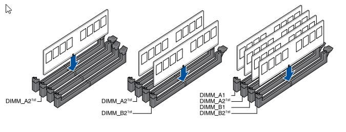 Для установки модулей памяти на плате Asus имеется четыре DIMM-слота (для работы памяти в Dual Channel в случае использования всего 2 модулей их следует устанавливать в А2 и B2. Плата поддерживает небуферизованную память DDR5 (non-EСС), а максимальный объем памяти составляет 192 ГБ. Поддерживаются профили XMP.