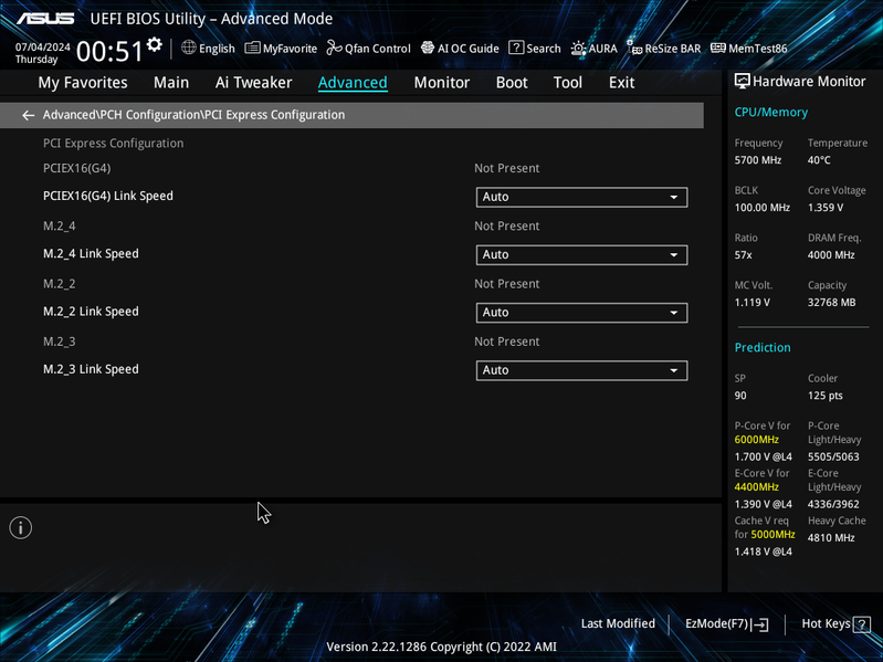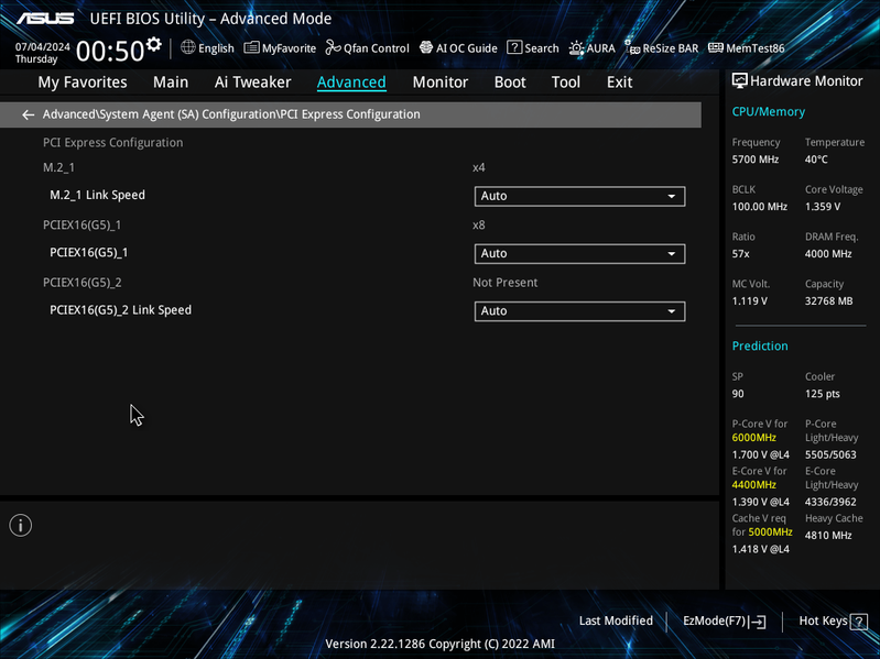 Теперь посмотрим на то, как работают процессоры в данной конфигурации. У CPU 12/13/14-го поколений всего 20 линий PCIe, 4 из них версии PCIe 4.0 отведены на порт М.2 (M.2_1).