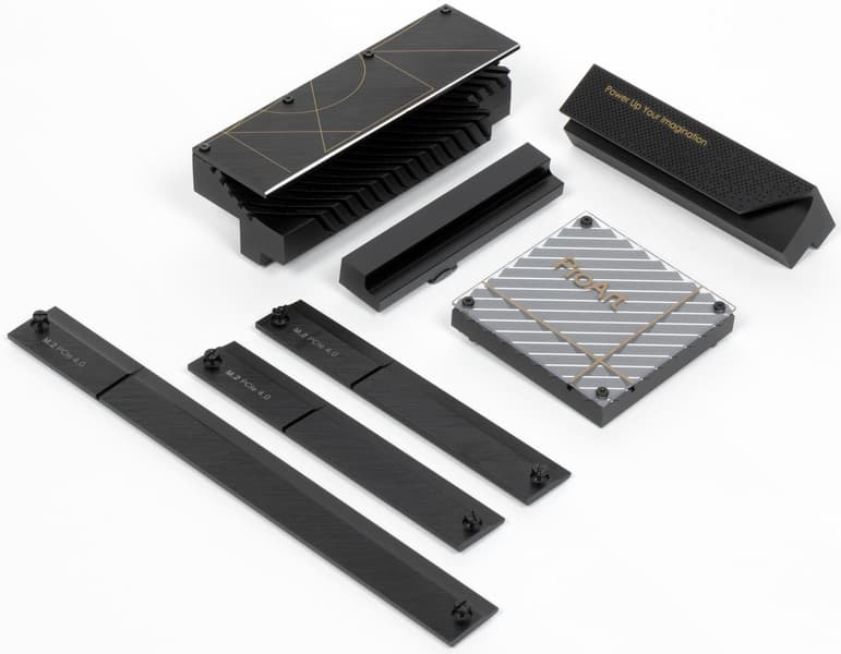 Все M.2 слоты имеют радиаторы. M2_1 и М2_2 обладают отдельными радиаторами, когда как остальные два нижних слота M2_3 и М2_4 имеют общий радиатор.