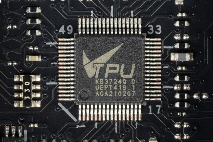 Хорошо известно, что инженеры Asus никогда не пользуются удвоителями фаз, даже если количество фаз огромно и превышает возможности ШИМ-контроллеров, поэтому практически на всех материнских платах среднего и топового уровней можно найти фирменный цифровой контроллер TPU, который как раз и занимается умными сборками фаз питания для ШИМ-контроллера. В частности тут имеем: