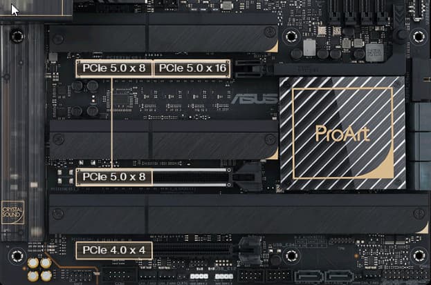 Оставшиеся 16 линий PCIe 5.0 надо делить на два слота PCIe x16 (_1 и _2). Вариантов переключения несколько: