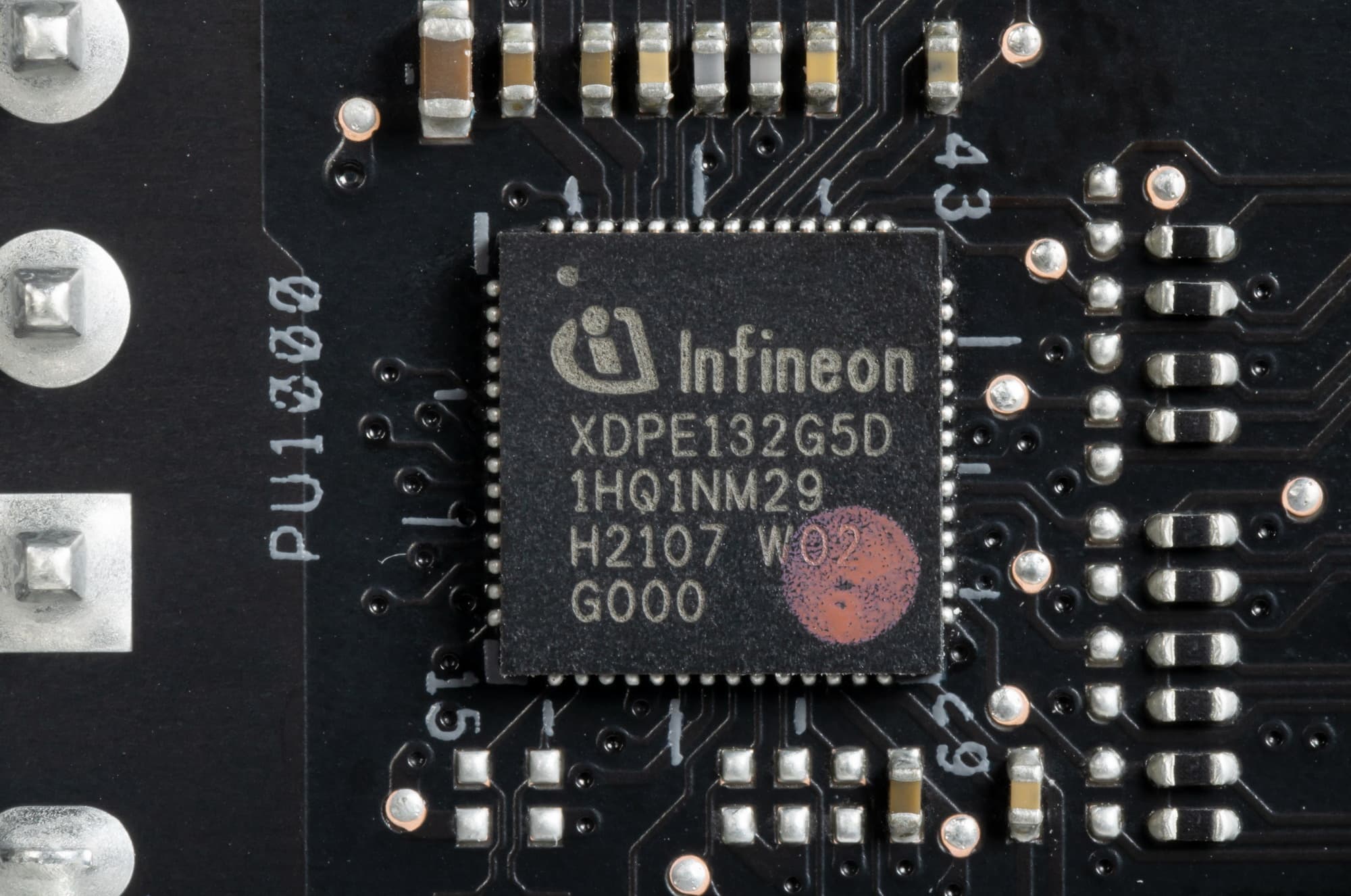 Управляет фазами цифровой контроллер Infineon XDPE132G5D, рассчитанный максимум на 16 фаз,